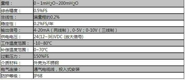 额定量程:0~0.1m…200m水柱